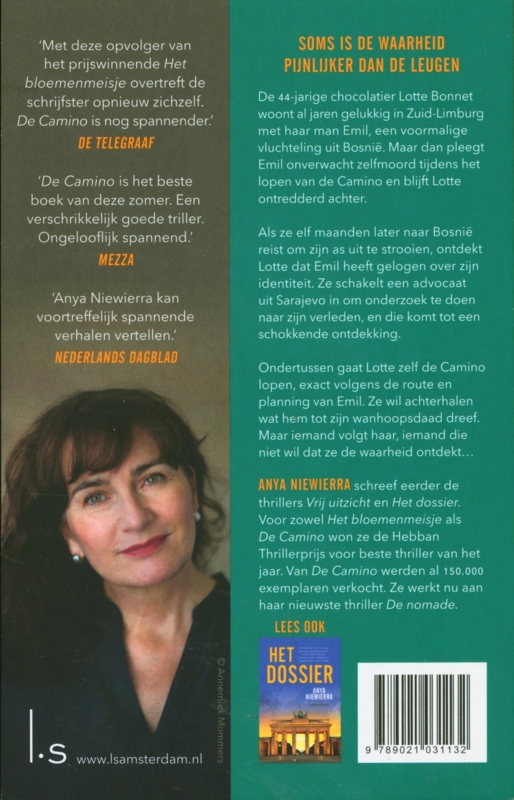 Wat een dijk van een boek. Het eerste, maar zeker niet het laatste boek dat ik van Anya gelezen heb. Een boek dat je van de eerste tot de laatste blz. in zijn macht heeft. Als je het denkt te begrijpen, is het toch weer anders. De dubbele verhaallijnen versterken dit des te meer. Je wandelt mee op de camino van Lotte. Als vrouw alleen onderweg, op zoek naar antwoorden. Momenten dat je haar toe wil schreeuwen: “ga naar huis, naar je veilige hoeve in het zuiden des lands”. Een spannend boek, maar ook een boek dat je maar weer eens aan het denken zet. Wie ben je? Waarom doe je iets zoals je het doet? Blij dat mijn wiegje stond, daar waar het stond. Hoe zou ik anders zijn geworden? Een zin in het boek zegt het heel treffend: Het oordeel over een waarheid wordt geveld door de plek en de tijd.