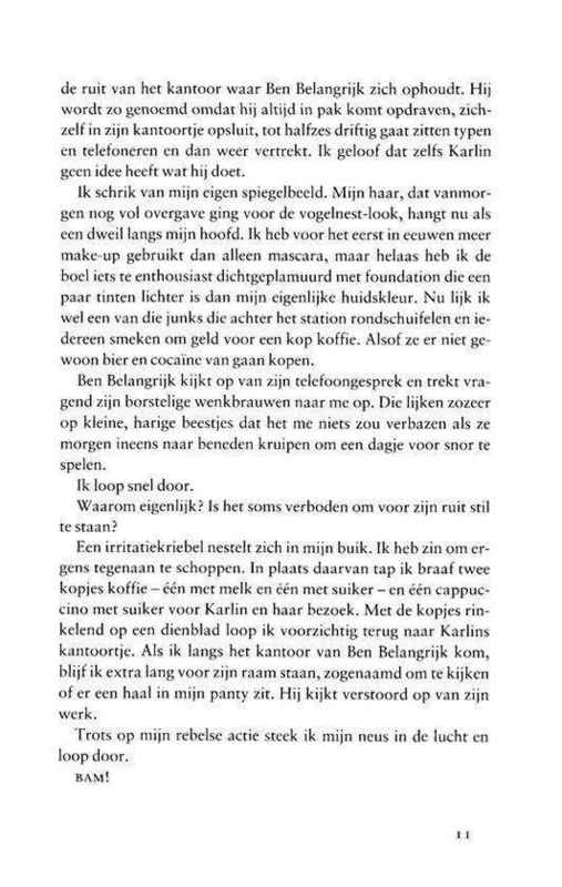 Als je me de rode draad van het verhaal vraagt dan is dat voor mij niet de liefde, de vriendschap maar wel het constante zichzelf neerhalen. Je zou van minder depressief worden. Gelukkig komt er tegen de helft van het boek wat andere verhaallijnen bij, en als je dan wat door het negativisme overleest is het best nog wel een leuk boek, met enkele onverwachte wendingen en enkele grappige wendingen.