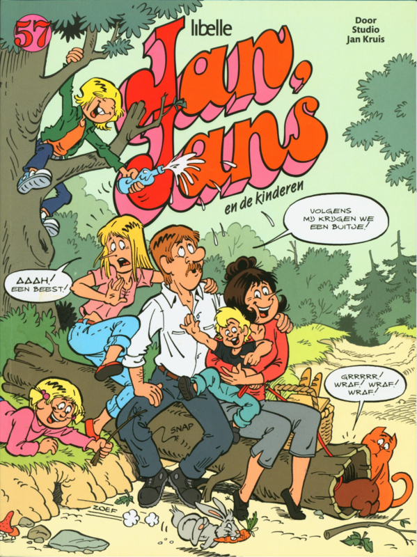 Deze populaire Nederlandse strip volgt het dagelijkse leven van het gezin met Jan, Jans en hun kinderen. Met humor en herkenbaarheid worden typische gezinsmomenten, grappige situaties en kleine avonturen verteld. In dit album beleven ze samen de natuur en onverwachte gebeurtenissen, waarbij iedereen op zijn eigen manier reageert. Het verhaal laat op luchtige wijze zien hoe het gezinsleven vol kleine uitdagingen en plezier zit.