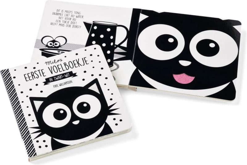 Interactief voelboekje in zwart-wit, ideaal voor baby’s en peuters.