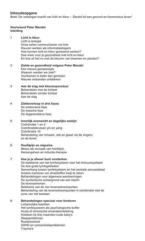 Dit boek is een `apotheek van het licht met veel tips en behandelmogelijkheden die je thuis kunt toepassen op jezelf, je familieleden en vrienden. Ook therapeuten vinden hier een schat aan nieuwe inzichten en behandelmethoden.
