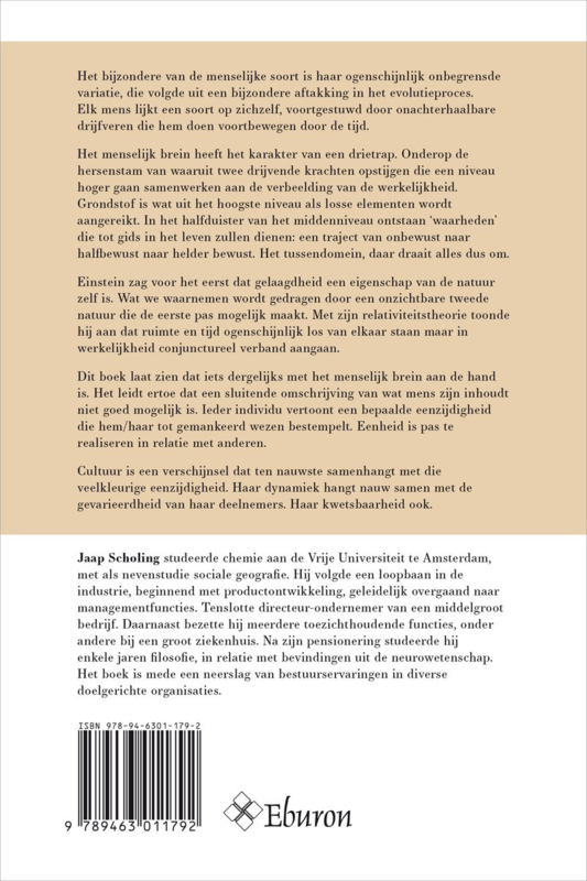 Een sluitende omschrijving van wat mens-zijn inhoudt is niet goed mogelijk. Ieder individu vertoont een bepaalde eenzijdigheid die hem of haar tot een gemankeerd wezen veroordeelt. Eenheid is pas te realiseren in relatie met anderen, volgens filosoof Jaap Scholing. In zijn boek behandelt hij de modaliteiten van zijn en worden en hun invloed op staatsvorm, religie en cultuur, op menselijk denken, zelfbewustzijn en gedrag.