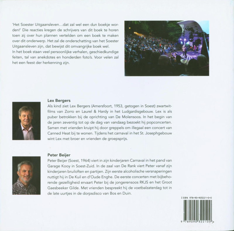‘Het Soester Uitgaansleven…dat zal wel een dun boekje worden!’ Die reacties kregen de schrijvers van dit boek te horen toen zij over hun plannen vertelden om een boek te maken over dit onderwerp. Het zal de onderschatting van het Soester Uitgaansleven zijn, dat bewijst dit omvangrijke boek wel. In het boek staan veel persoonlijke verhalen, geschiedkundige feiten, tal van anekdotes en honderden foto’s. Voor velen zal het een feest der herkenning zijn.
